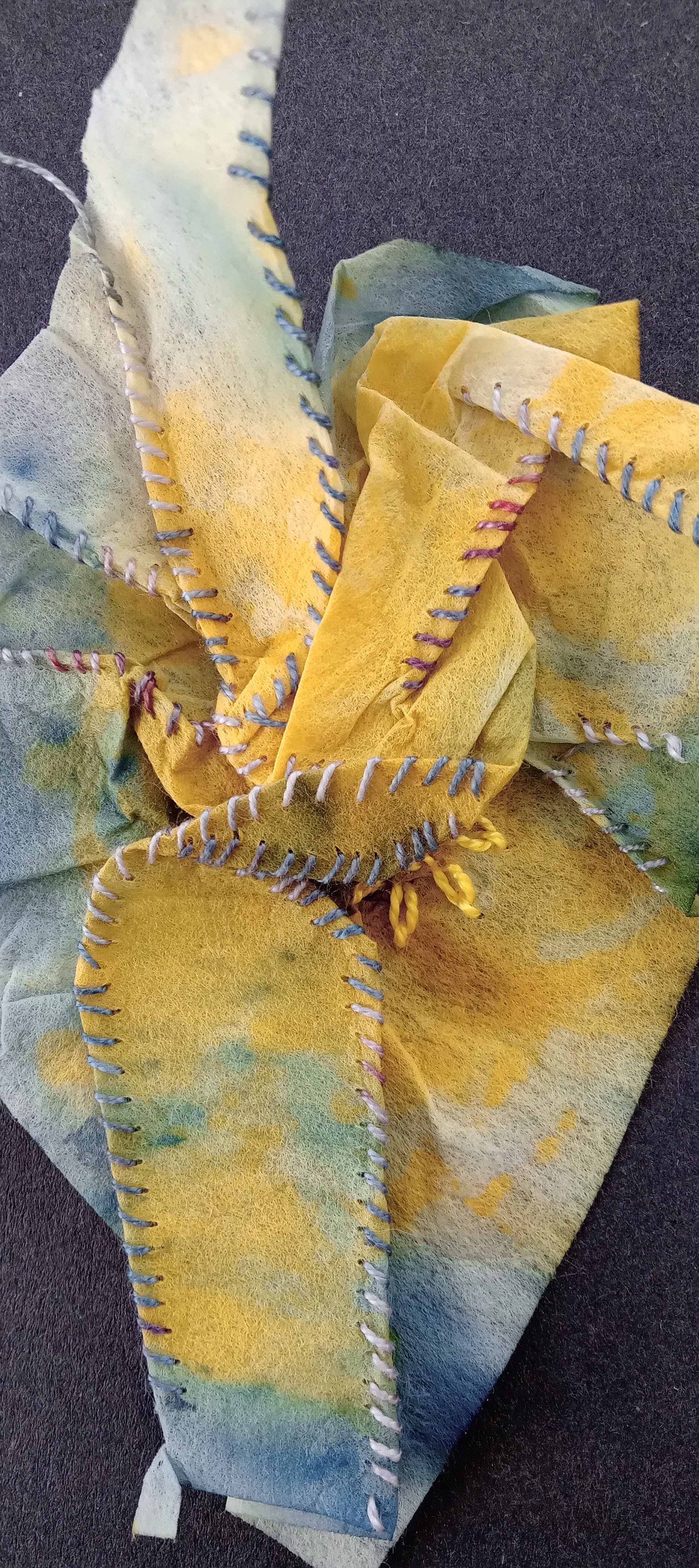A different type of stitch was presented at 22 weekly intervals. It was suggested that each sample was attached to a piece of card as a luggage label. Recycled card from Christmas cards were suggested to make small card backing for each sample. You could have fun working out ways of displaying them.